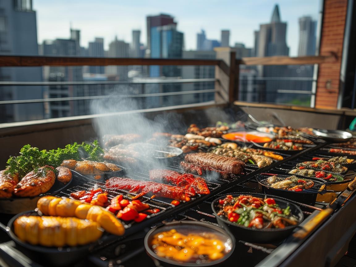 🔥顶楼阳台烧烤,物业叔叔可要瞪大眼睛盯着呢!小心被请去‘喝茶’哦~☕️安全第一!